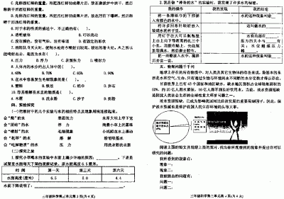 苏教版小学科学三年级上册第三单元《生命之源——水》,本单元试题比较简单,绝大多数题目都是常识性、记忆性问题,真正考察学生科学能力、科学素养的题目极少。如果平时的课堂上学生背诵过关,本单元要考出好成绩还是很容易的。